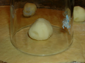 3. While ground beef is cooking, cook the pasta shells according to directions; drain. Set shells out individually on cutting board/baking sheet so that they don't stick together.